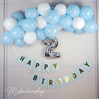 (Tặng Dây Kết Bóng) Set Bóng Bay Trang Trí Sinh Nhật Tông Xanh Dương Cho Bé Trai HP01
