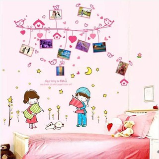 BỘ COMBO DECAL GHÉP ĐÔI TRANG TRÍ - Khung Dây ảnh hồng kết hợp Bé Gái Trai ngủ ngon ( 2 TẤM )
