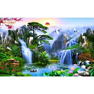 Tranh dán tường 3d thác nước rừng cây SƠN THUỶ thiên nhiên