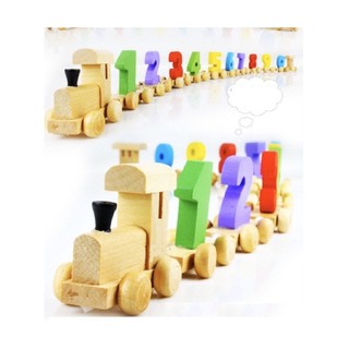 Đoàn tàu chở kéo số 12 toa nối đuôi nhau cho bé vận động và học toán - đồ chơi giáo dục gỗ an toàn