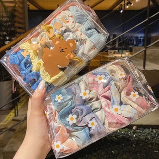 miumiuaDây Buộc Tóc Lưới Thêu Hoa Cúc Nhỏ Màu Xanh Dương Dễ Thương Phong Cách Hàn Quốc