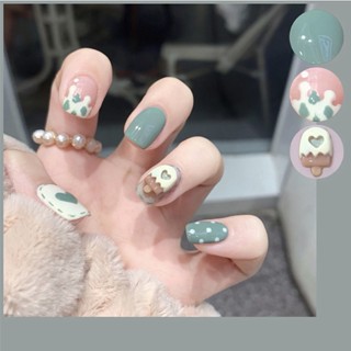 Set 24 Móng Tay Giả Hình Que Kem Màu Trà Xanh Thời Trang