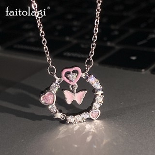Vòng cổ Mặt Hình Trái Tim / Bướm Hồng Đính Đá Thời Trang Cho Nữ Y2k