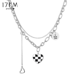 Vòng cổ hai lớp 17KM phối mặt hình trái tim họa tiết kẻ ô trắng đen kiểu retro dành cho nữ