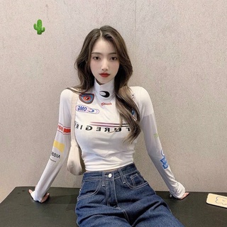 áo tay dài cổ cao in họa tiết hình thù đua xe thể thao