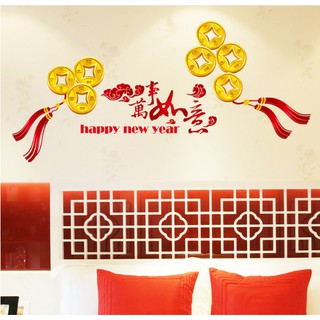 Decal trang trí Tết - Đồng Xu Vàng chữ đỏ