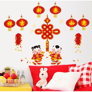 Decal trang trí Tết - Bé Trai bé Gái đồ đỏ Chúc Mừng Năm Mới