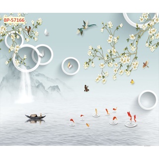 Tranh hồ cá chép huyền ảo dán tường khổ lớn 3D, không giới hạn kích thước
