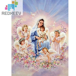 Tranh Đính Đá Kim Cương Toàn Bộ 5D DIY Hình Đức Mẹ Và Thiên Thần