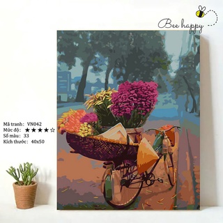 Tranh tô màu theo số xe đạp hoa phố cổ BEE HAPPY cao cấp màu 5ml, 2 bộ cọ có sẵn mã VN042
