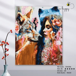Tranh tô màu theo số Cô gái và chó sói BEE HAPPY cao cấp màu 5ml, 2 bộ cọ có sẵn mã CN4586