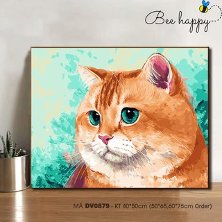 Tranh Sơn Dầu Số Hóa Tự Tô Chú Mèo Có Đôi Mắt Buồn Sondausohoavn Mã DV0879 Căng Khung Sẵn, Màu Chuẩn, Đầy Đủ Dung
