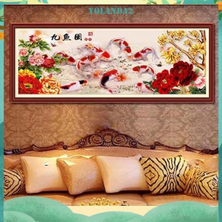 Tranh Thêu Trang Trí Thủ Công 5d Hình Chín Con Cá (Mũi Thêu Hình X)