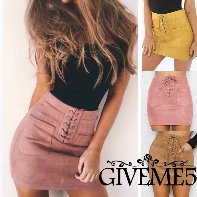 Váy bút chì da lộn thắt dây thời trang cá tính cho nữ