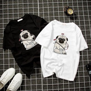 Áo thun unisex form rộng chó pug thần tình yêu vải dày mịn 2019T2165
