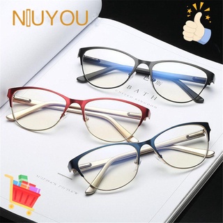 NIUYOU [Ready Stock] Reading Glasses Anti-fatigue Optical Eyewear Diopter +1.0 +3.5 Magnification Clear Lens Retro Metal Half Frame Presbyopic Eyeglasses