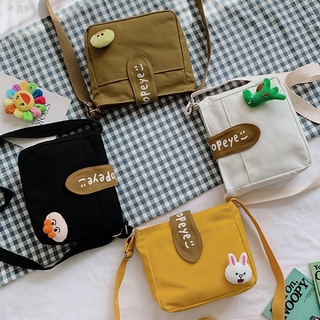 Túi Đeo Chéo Vải Canvas Dễ Thương Phong Cách Hàn Quốc Cho Nữ
