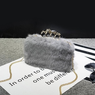 Hàng Có Sẵn Túi Xách 100% Lông Thỏ Thật Handmade Túi Đeo Chéo Da Pu Phối Khóa Kéo Thời Trang Dự Tiệc Cho Nữ