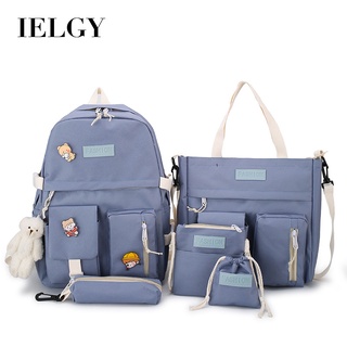 Ba lô túi xách đi học IELGY vải canvas phối màu tương phản kiểu Hàn Quốc thời trang