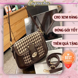 Túi xách nữ kẹp nách đeo chéo đeo vai vân caro khóa xoay phong cách Hàn Quốc Capucha T57