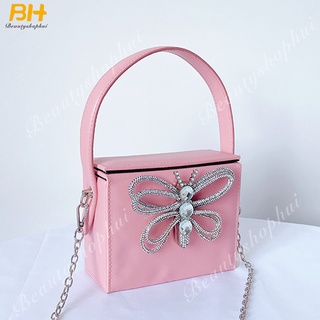 Túi Xách Da PU Cầm Tay Dáng Vuông Nhỏ Đính Đá Thời Trang 2022 Sang Trọng Cho Nữ
