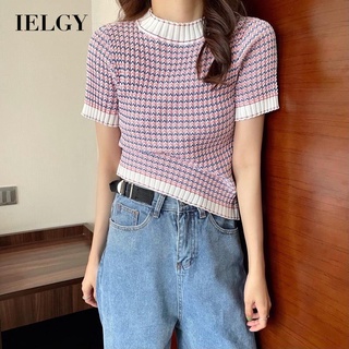 IELGY Áo Thun Tay Ngắn Họa Tiết Sọc Ngang Màu Sắc Tương Phản Phong Cách Hàn Quốc Cho Nữ