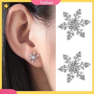 TUSH_Elegant Women Rhinestone Inlaid Snowflake Ear Stud Earrings Jewelry Xmas Gift