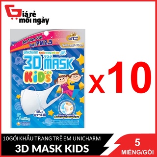 [Mới] Combo 10 gói Khẩu trang trẻ em Unicharm 3D Mask Kids 5 cái/gói X10