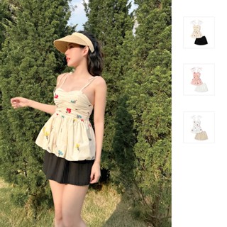Set Nữ Áo Strapless Flowers Pleated Skirt, Chất Vải cotton thêu lót lụa, lụa cát dập 5 ly lót lụa,WSB044-03,SOMEHOW