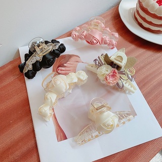 Kẹp nơ vải lụa hoa Vintage KAH163