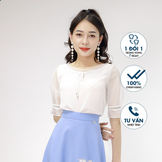 Áo sơ mi phối vải lưới cổ và tay, đính nơ Emspo SMS2357