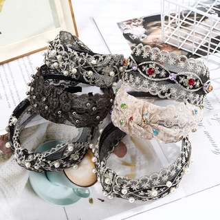 Cài tóc vải ren lưới bản rộng thắt nút đính đá ngọc trai thời trang Hàn Quốc cho nữ