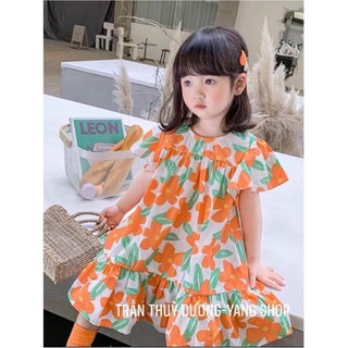 Váy Đầm Cho Bé Gái Họa Tiết Hoa Nền Hồng Cực Xinh Vải Thô Hàn Quốc