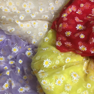 (Sỉ) Vải voan lưới hoa cúc hàng loại 1 chất đẹp may váy