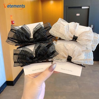 Kẹp Tóc Hình Nơ Lớn Bằng Vải Voan Phong Cách Vintage Ngọt Ngào Dành Cho Nữ