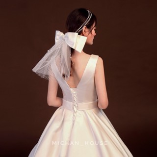Khăn voan cô dâu ngắn đính nơ, khăn voan cô dâu ngắn