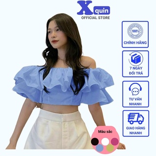 Áo croptop nữ bẹt vai tay phồng Xquin, Áo kiểu nữ thiết kế 2 lớp vải voan bèo mềm siêu hot