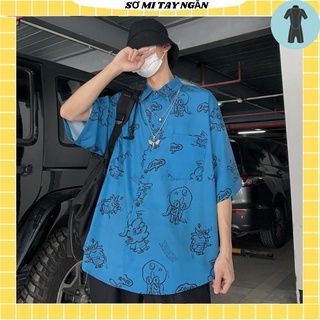 Áo sơ mi họa tiết unisex from rộng nam nữ , sơ mi nam nữ vải voan lụa mịn mát free size 40kg - 70kg