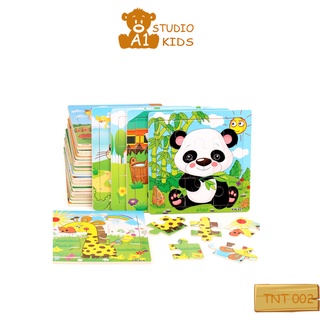 Tranh ghép hình cho bé bằng gỗ trí tuệ 9 mảnh kích thước 15x15cm 24 mẫu động vật - đồ chơi xếp hình