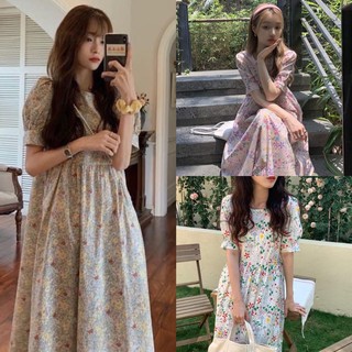 Đầm nữ maxi vải hoa phong cách retro xinh xắn đầm hoa váy hoa nhí