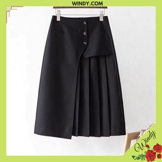 Chân váy ulzzang dài xếp ly 1 thắt lưng màu xám đen , Chân Váy sẻ tà lệch hai tầng ly Shine Clothes