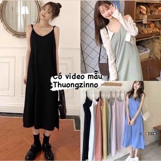 [Ảnh thật/Video] Váy hai dây chất Đũi lụa dáng xuông siêu mát dây lưng điệu đà kèm ảnh thật