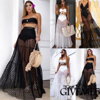 Chân váy dài maxi eo cao họa tiết chấm bi xuyên thấu quyến rũ mùa hè dành cho nữ