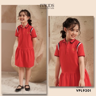 Váy polo đỏ sọc vai thiết kế 137Kids chất cotton thấm hút mồ hôi tốt cho bé gái đi chơi đi học