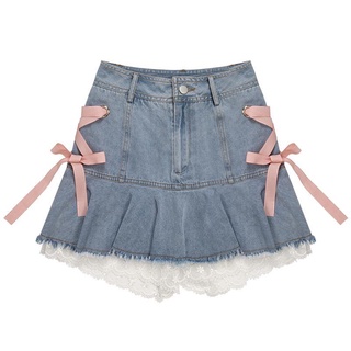 Jiashucheng Chân Váy Denim Buộc Dây Màu Hồng Và Sa Trắng Gạc Thay Đổi Cho Bé Gái