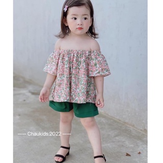 SIÊU PHẨM !! Bộ cộc tay bé gái, Set hoa nhí trễ vai quần xanh bé gái