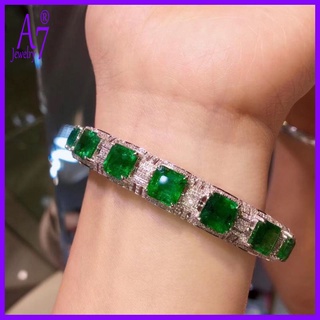 A7 | S925 bạc inlay màu xanh lá cây pha lê sang trọng vòng đeo tay
