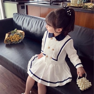 Set váy cổ vest viền bèo bé gái