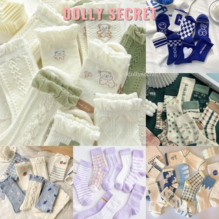 Set 5 đôi tất vớ cổ cao họa tiết Vintage dễ thương cotton mềm nhiều kiểu cute dễ thương DOLLY SECRET
