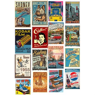 Bộ 32 hình dán sticker vintage, decal xưa, decal vintage xe hơi